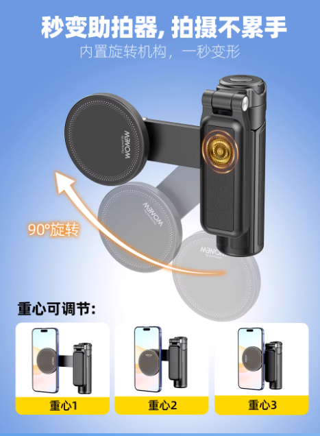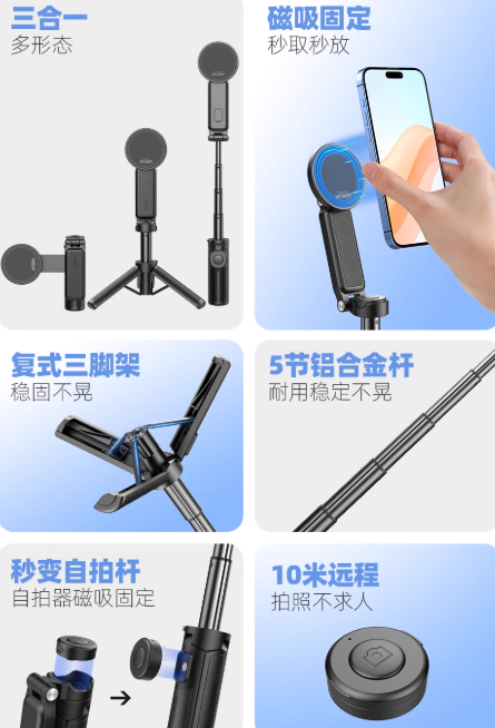 磁吸款【绅士黑-迷你助拍杆】自带蓝牙自拍器