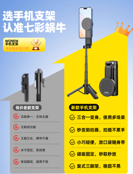 多功能手机支架,秒变助拍器,拍摄不累手~