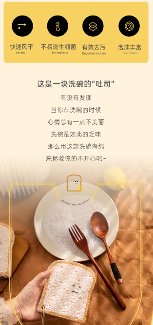 这是一块洗碗的“吐司”,快让它成为您的厨房清洁小助手吧~