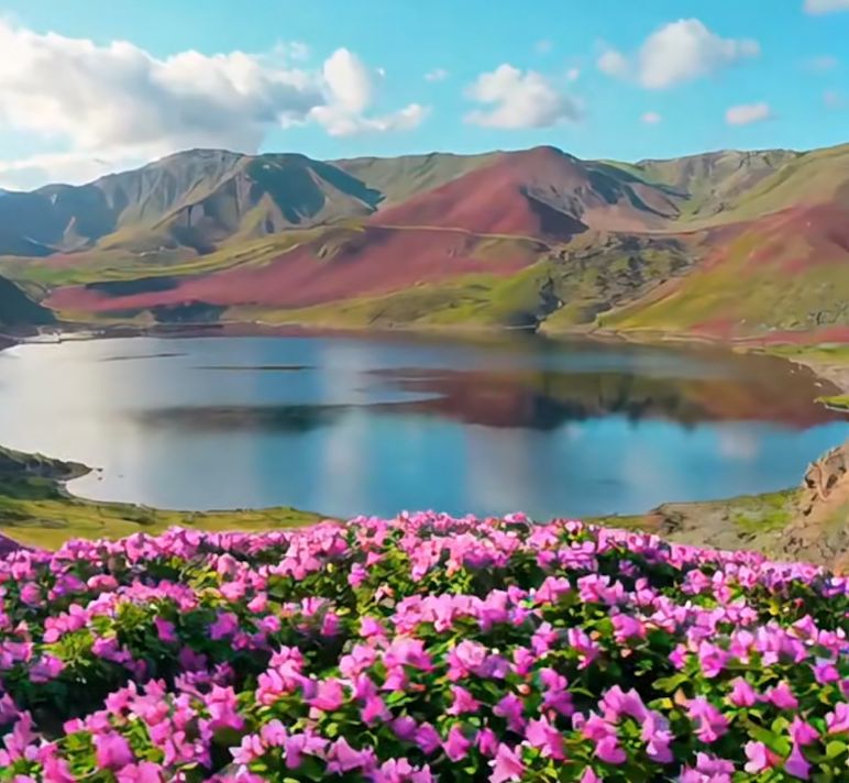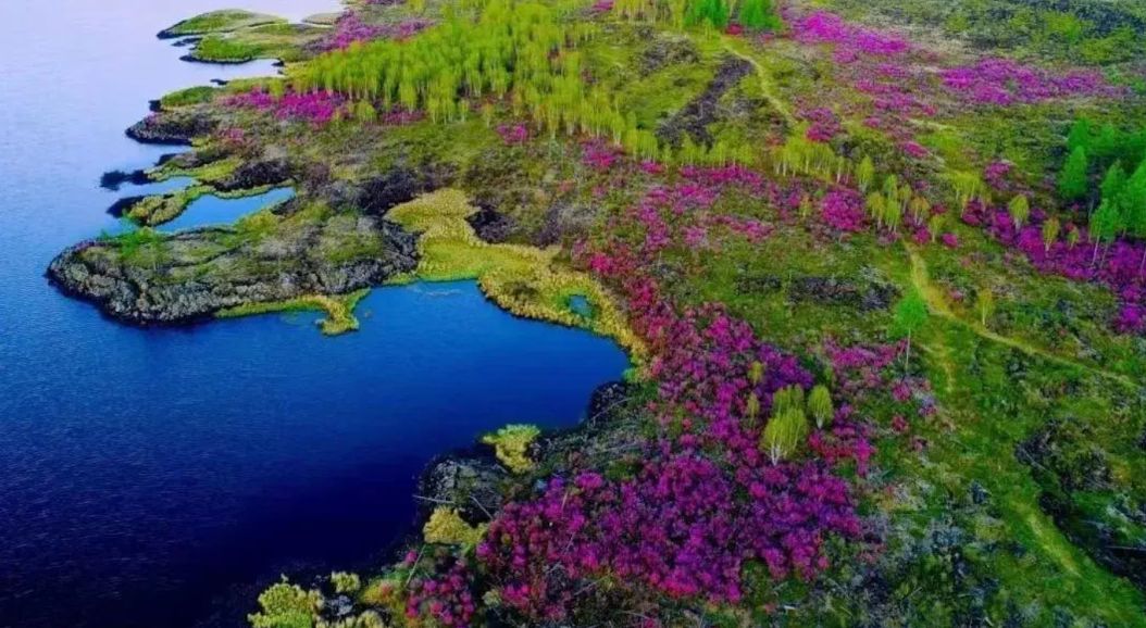 火山爆发时,熔岩流堵塞河谷形成的湖泊。因湖畔开满杜鹃花而得名。当残雪消融、春回大地之时,湖边杜鹃花灿然怒放,花树相间,红绿分明,湖面如霞似火,湖中野凫成群,灰鹤、天鹅栖息,成群的柳根鱼竞相觅食;夏季湖面浮萍田田,迎风摇曳,清香扑面,似江南美景。有诗赞叹杜鹃湖:“神女新浴幽谷香,金针巧为织女绣,素笺遥寄化春雨,杜鹃湖畔舞霓裳。