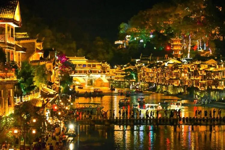 傍晚日暮 ,沿沱江而下(含船票),穿过【虹桥】,徜徉于凤凰古城的日暮中,迷恋在沱江两岸的吊脚楼边。远处炊烟袅袅,近处岸上叫卖上喧嚣,古城与小桥,流水融为一体,瞬间风情万种,如桃源之境。
