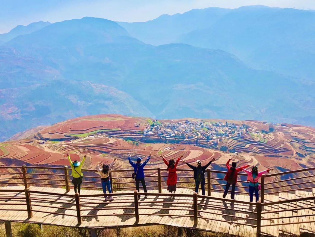10:00 【爱春观景台】这里是拍摄蓝梯田最漂亮的地方,跟随领队走下观景台,走进哈尼族小姑娘身边去美拍。