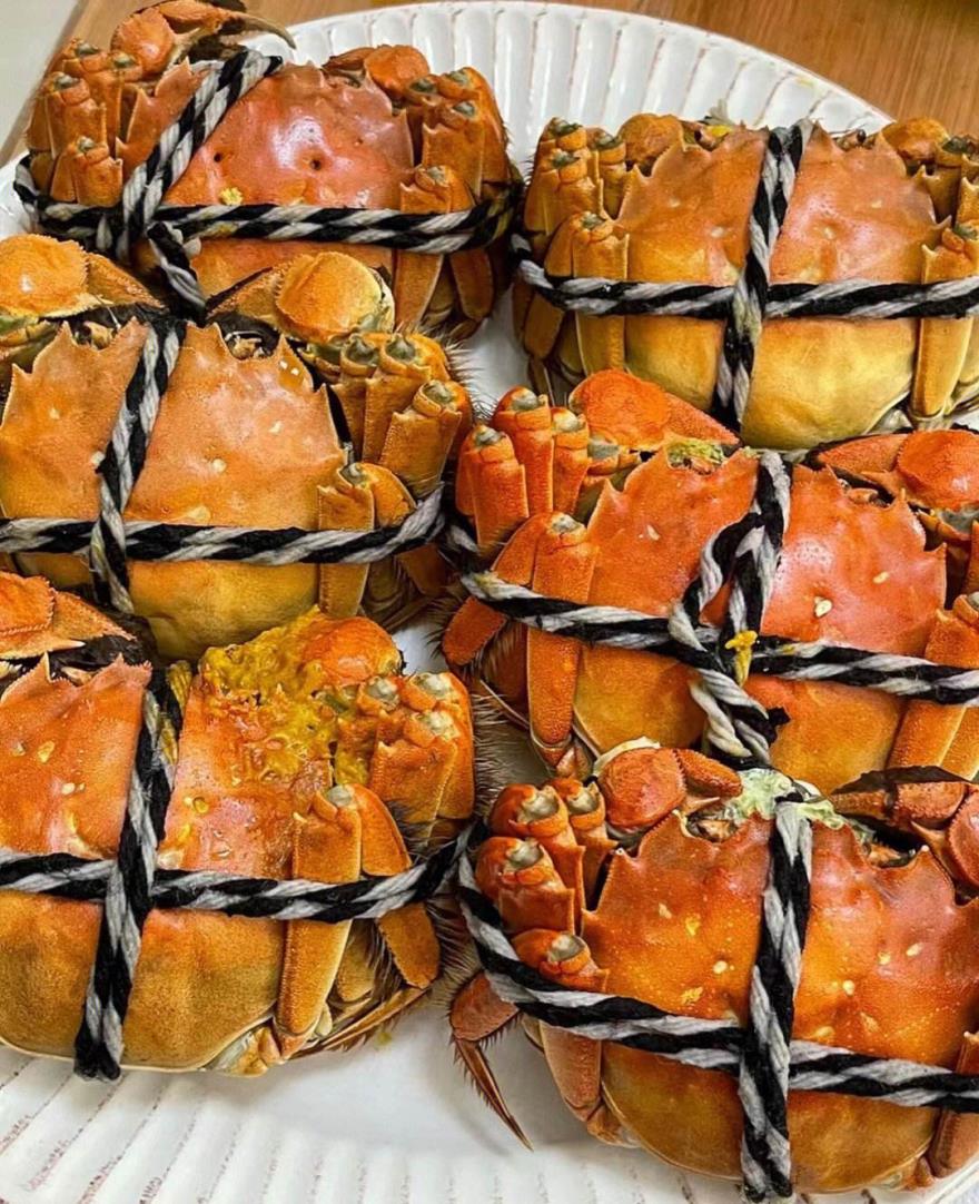 接站后用中餐:阳澄湖大闸蟹,每人公母各一只。