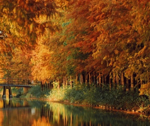 随着秋色渐浓,方塘乡两千余亩红杉林密集整齐地生在水中,渐次变红,浅红、深红、金红......各种颜色相互交织着,倒映在清澈明净的水面,美得不可思议,恍如北疆的喀纳斯风光。