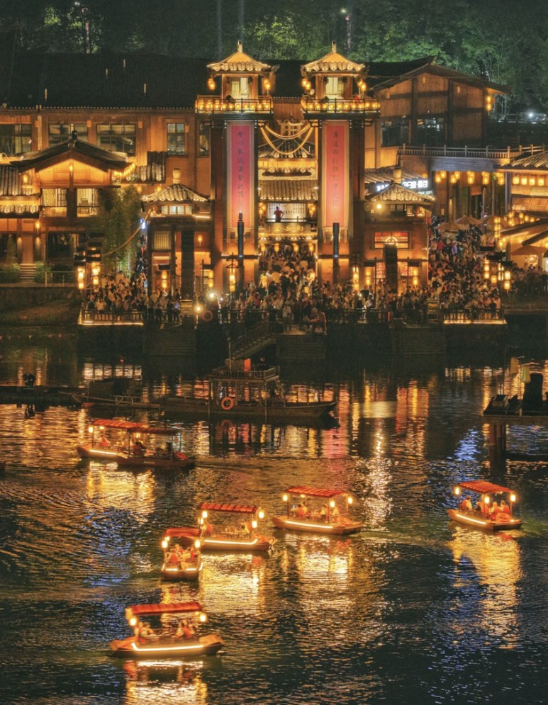 穿越千年的古风夜景,南岳里以“古风夜景”出圈灯光、湖影、非遗表演交织成一场穿越千年的时空盛宴!