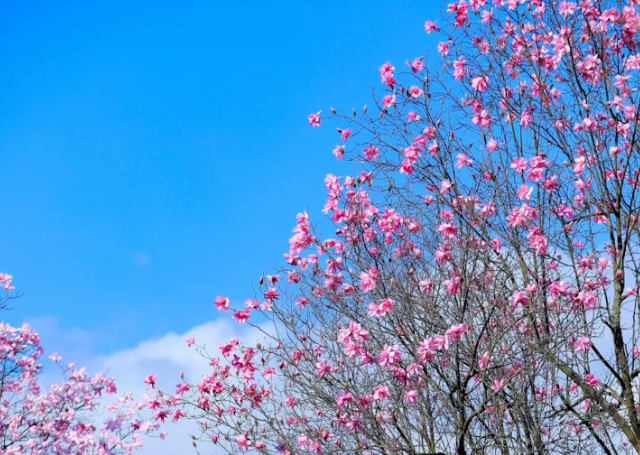 辛夷花是药王谷最著名的药花,也是世界上最壮观的花。此处花枝蔽空、花瓣覆地,漫步其中,花瓣随风飘落,扬起一阵阵的辛夷花雨。